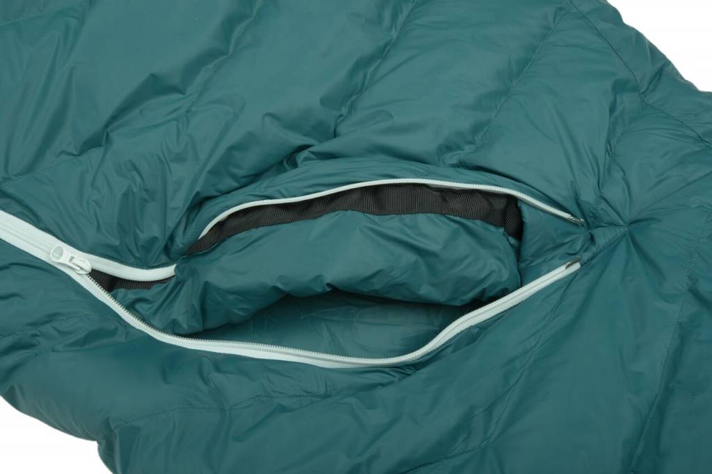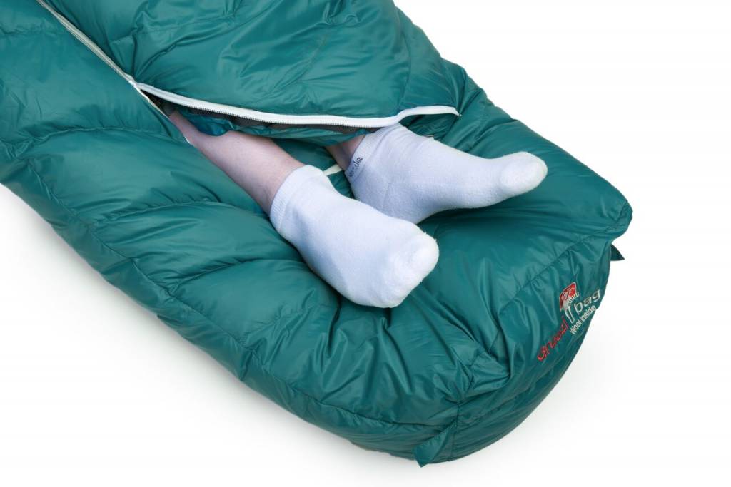 Durch den einzigartigen Verlauf des Zwei-Wege-Reißverschlusses kann man beim DownWool Subzero in warmen Nächten die Füße sehr hygienisch auf die Oberseite des Schlafsacks legen. Schiebt man in das Kisseneinschubfach z.B. eine Fleecejacke, bietet der DownWool Subzero auch ein unverrutschbares Kopfkissen. Beste Voraussetzungen für einen erholsamen Schlaf.